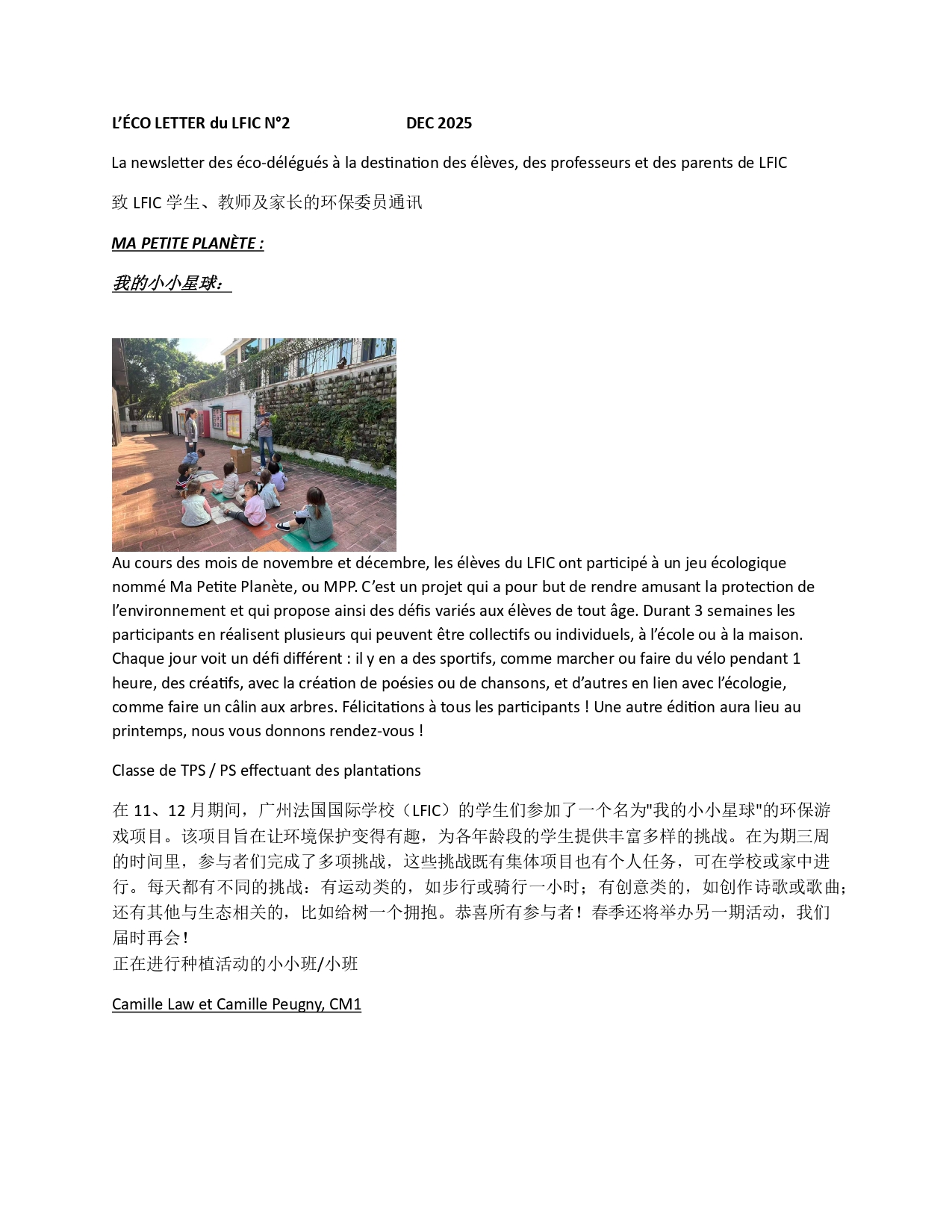 🇫🇷 Les classes de PS et MS ont participé à un jeu de défis écologiques et éco-citoyens organisé par Ma Petite Planète, du 10 au 31 mars 2025.Nous sommes très fiers de nos maternelles qui ont permis à notre établissement de remporter la 1 ère place sur 833 établissements participants à travers le monde.Ils ont pu, de façon ludique, être sensibilisé à la protection de l'environnement et mettre en avant nos objectifs d'établissement labellisé EFE3D (Établissement Français à l'Etranger en Démarche de Développement Durable).Félicitations à nos petits Phénix et leurs parents !